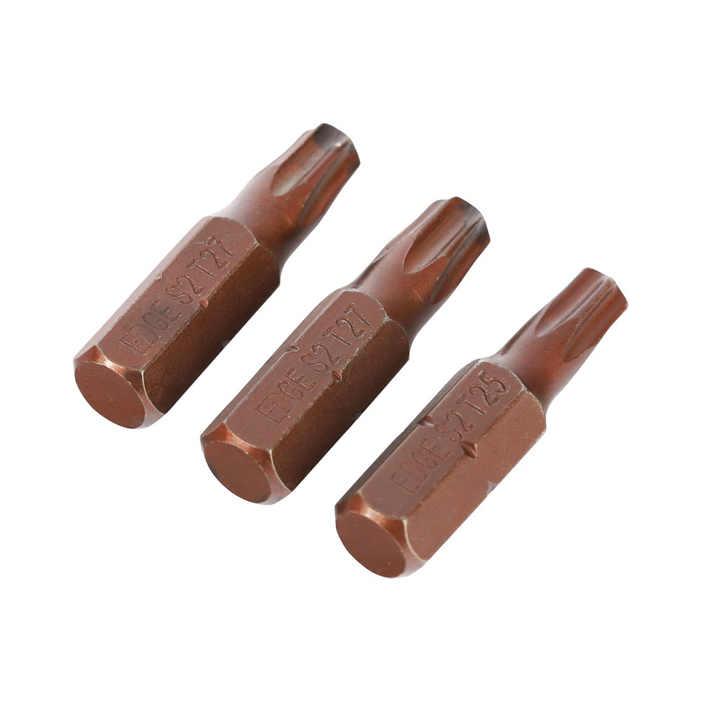 Краткие характеристики (ТТХ)длина 25 мм, Т27, сталь S2, хвостовик 1/4 С, 3 шт.