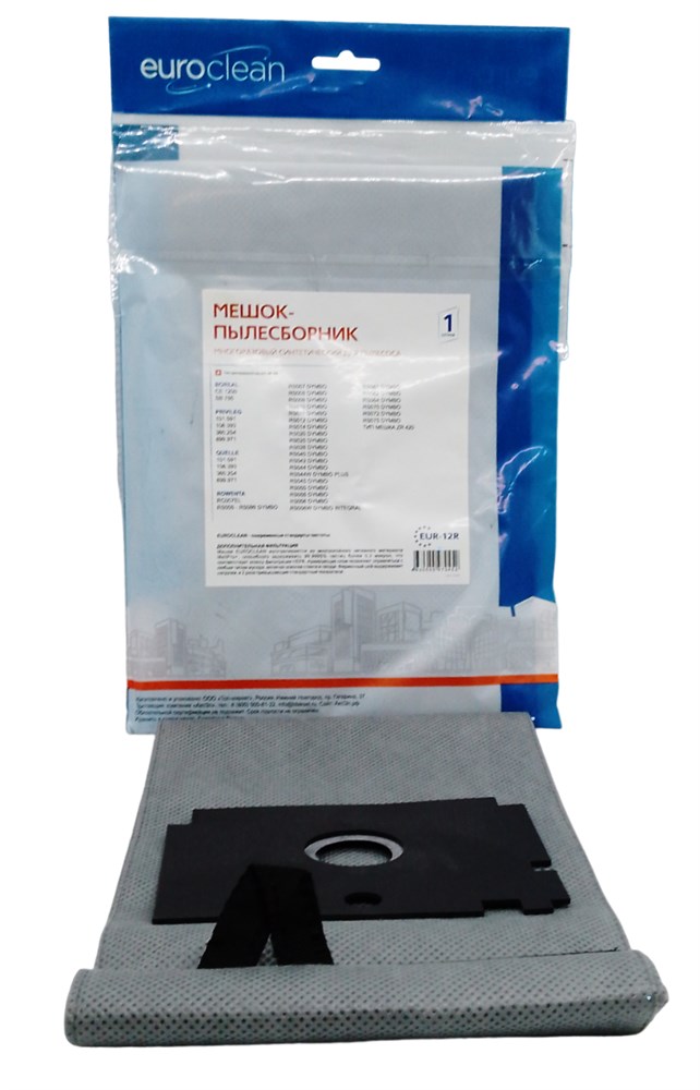 Мешок-пылесборник Euroclean EUR-12R является многоразовым фильтрующим элементом для использования в бытовых пылесосах. Он используется для сбора пыли и мусора, а также для фильтрации воздуха, который проходит через пылесос.