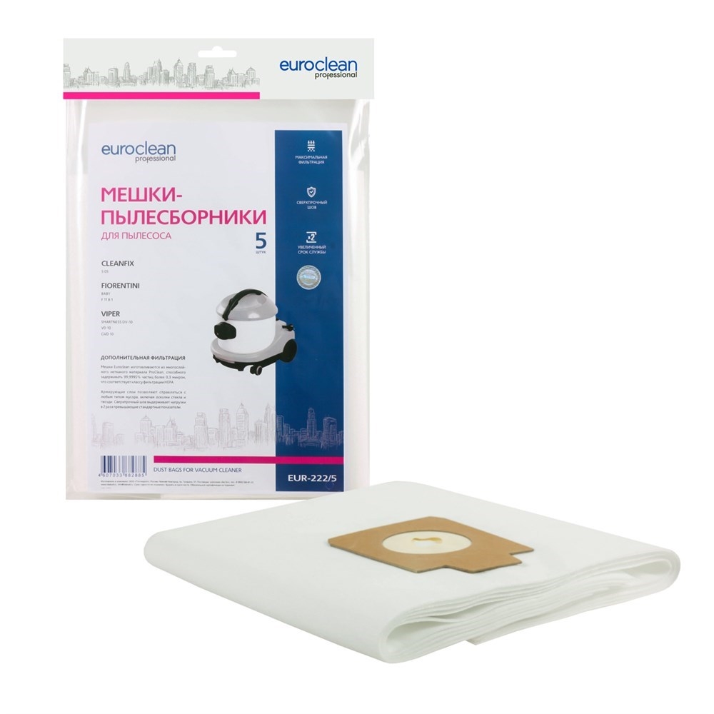 EUR-222/5 Мешки-пылесборники Euroclean синтетические для пылесоса, 5 шт - ИП Андреев М.А