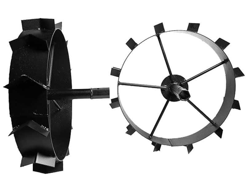 Грунтозацепы это специальные металлические колеса с грунтозацепами, устанавливаемые на мотоблок для повышения тягового усилия и улучшения сцепления блока с почвой.