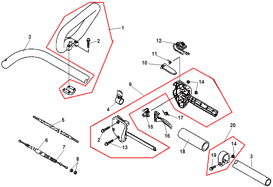 Хомут рукоятки управления триммера Echo GT-22GES (рис. 20)