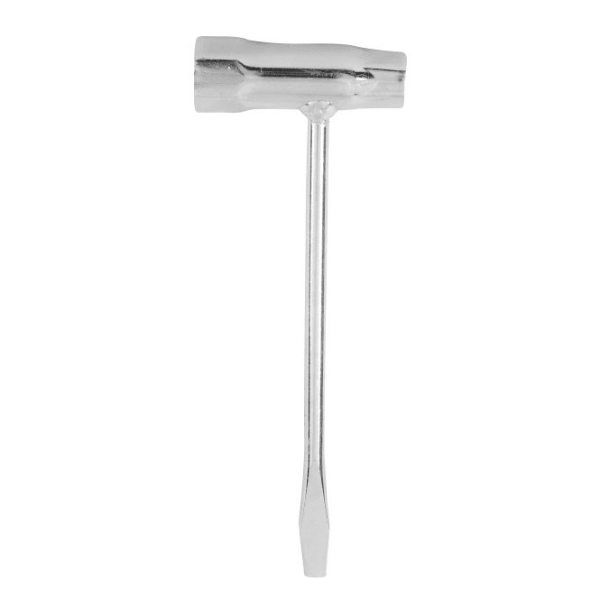 Универсальный свечной ключ PATRIOT для проведения технического обслуживания свечей зажигания в двух или четырехтактных двигателях садовой техники, силовой и строительной техники. Инструмент включает в себя две торцевые головки диаметром 13 мм и 19 мм, а также плоскую отвертку.