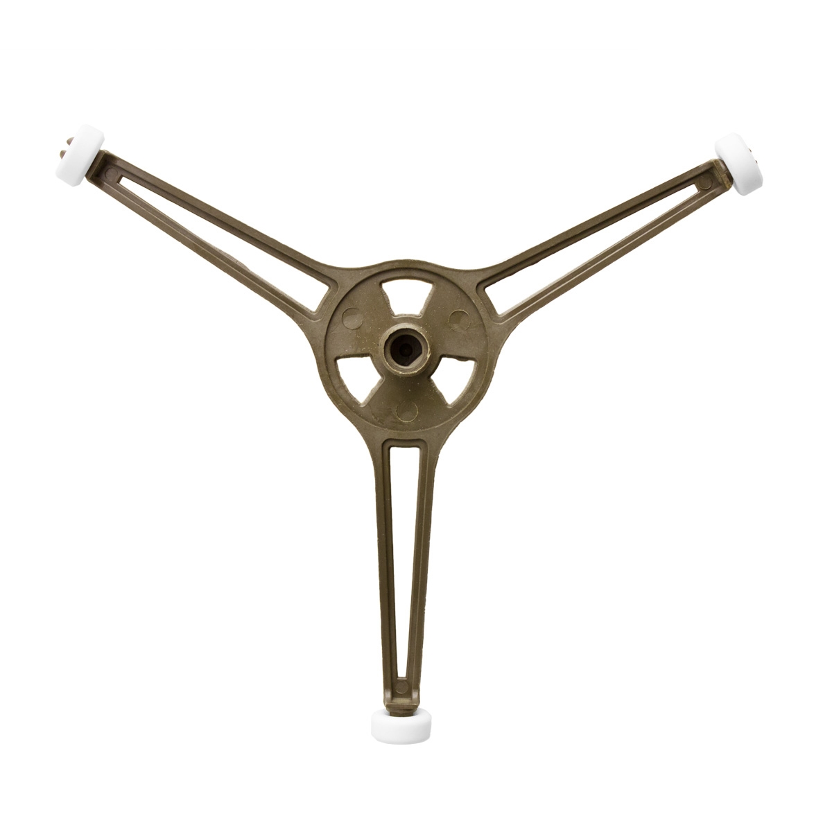 Крестовина представляет собой литую конструкцию из трех лучей, концы которых оснащены роликами для удобного вращения и могут различаться по размерам.