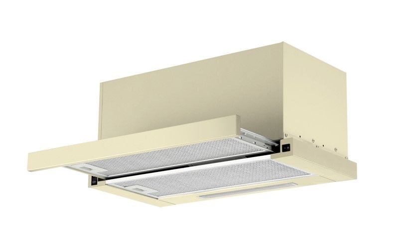 В последнее время все большим спросом начинают пользоваться встраиваемые вытяжки. Они довольно компактны и монтируются в специальный навесной шкаф над плитой. При этом остаётся лишь узкая панель, которая выдвигается вперёд при работе вытяжки. Это нужно для более полного охвата поверхности плиты, чтобы грязный воздух не поднимался к потолку.