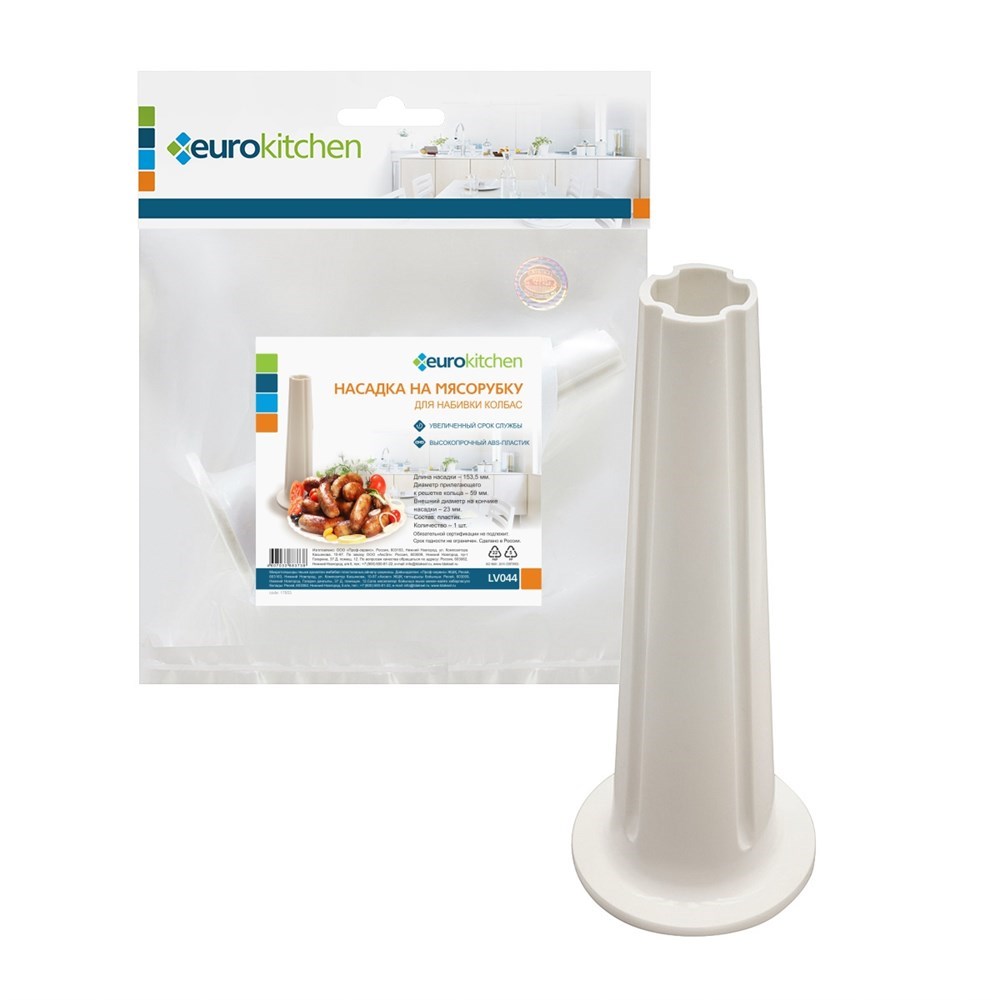 Насадка на мясорубку для набивки колбас, диаметр прилегающего к решетке кольца 59 мм, длина 153,5 мм 1 шт., бренд: EUROKITCHEN, арт. LV044