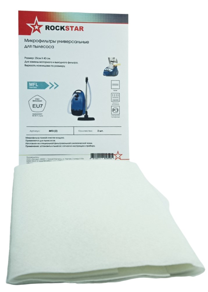 Набор универсальных синтетических микрофильтров ROCKSTAR MF3 ( 2 микро фильтра ) для бытового пылесоса.