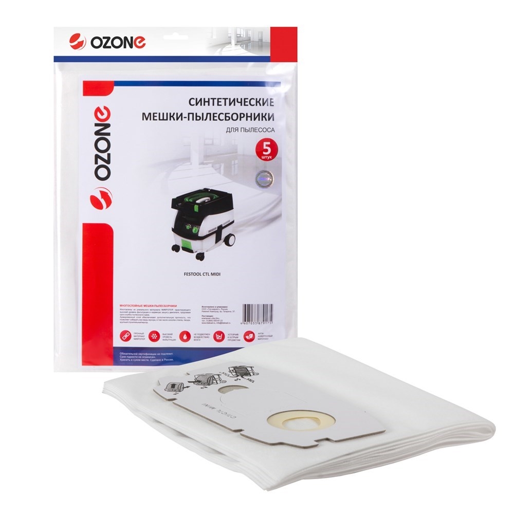MXT-253/5 Мешки-пылесборники Ozone синтетические для пылесоса, 5 шт - ИП Андреев М.А