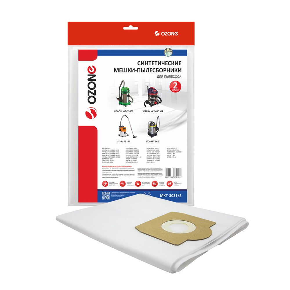 Мешки-пылесборники Ozone MXT-3031/2 синтетические для пылесоса, 2 шт
