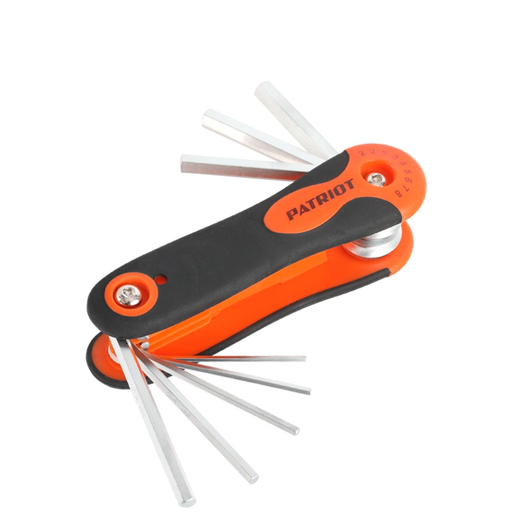 Набор раскладной PATRIOT SKH-8 F включает в себя восемь шестигранных ключей, сделанных из углеродистой стали. Размеры ключей в наборе (в мм): 2; 2,5; 3; 4; 5; 6; 7; 8. Держатель сделан из пластика и в сложенном виде занимает минимум места.