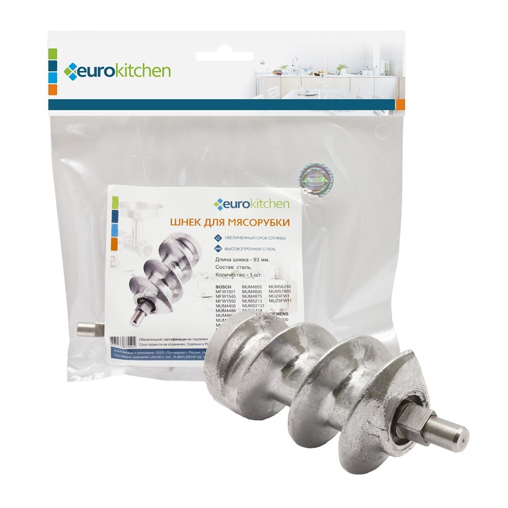Приобретая шнек для мясорубки/кухонного комбайна бренда EUROKITCHEN, вы делаете правильный выбор, получая высококачественный продукт по приемлемой цене. Будьте уверены, что с помощью этой запчасти ваша мясорубка или комбайн прослужит вам долгие годы, сохраняя свою эффективность и производительность.