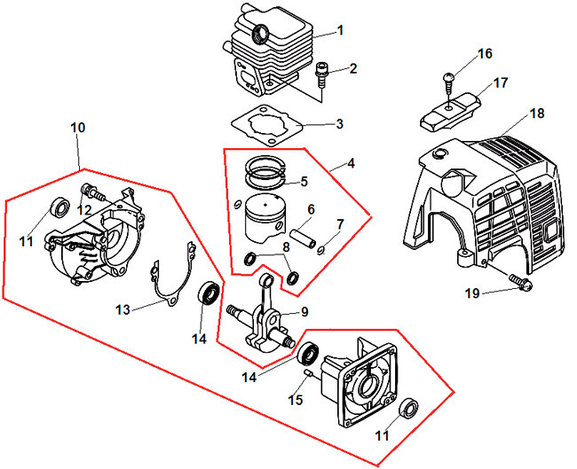 Цилиндр триммера Echo GT-22GES (рис. 1)